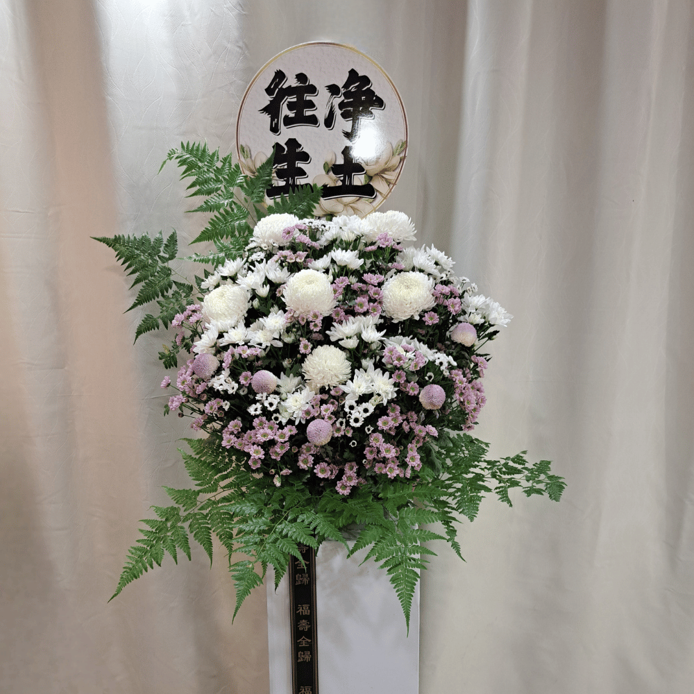 SingleBox Funeral Condolences Wreath Flower Stand (Purple/White)