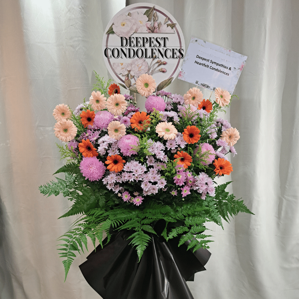 SingleBox Funeral Condolences Wreath Flower Stand (White/Purple)